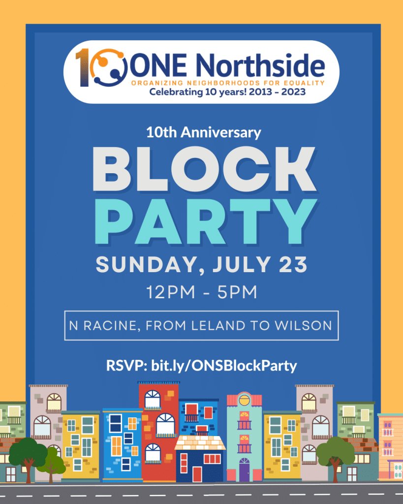Join us on Sunday, July 23rd, from 12pm-5pm on North Racine from Leland to Wilson for a family-friendly afternoon of fun. Expect food, music, activities, and a welcoming atmosphere of excitement as our leaders celebrate how far we’ve come in ten years and dream about how far we’ll go in the next ten.