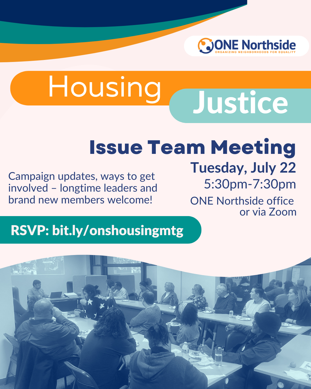 Join our Environmental Justice Team for our quarterly meeting! We will review our current campaigns, introduce a potential new one, and decide our next steps. In person at the ONE Northside office or via Zoom. **Please register in advance with the bit.ly link below** ¡Únase a nuestra reunión de Justicia Ambiental! Hablaremos sobre nuestras campañas […]
